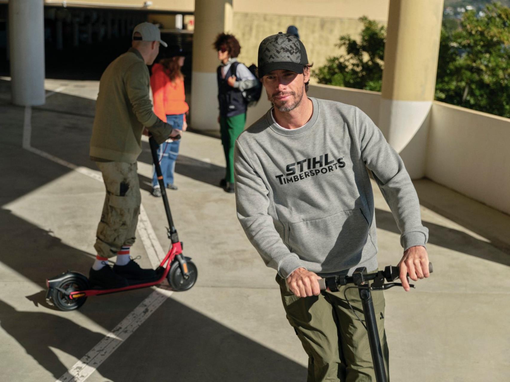 Die vordere Hälfte ist mit einem Allover-Print kleiner TIMBERSPORTS® Logos, gekreuzter Äxte und stilisierten Holzsplittern überzogen. Größenverstellbar.